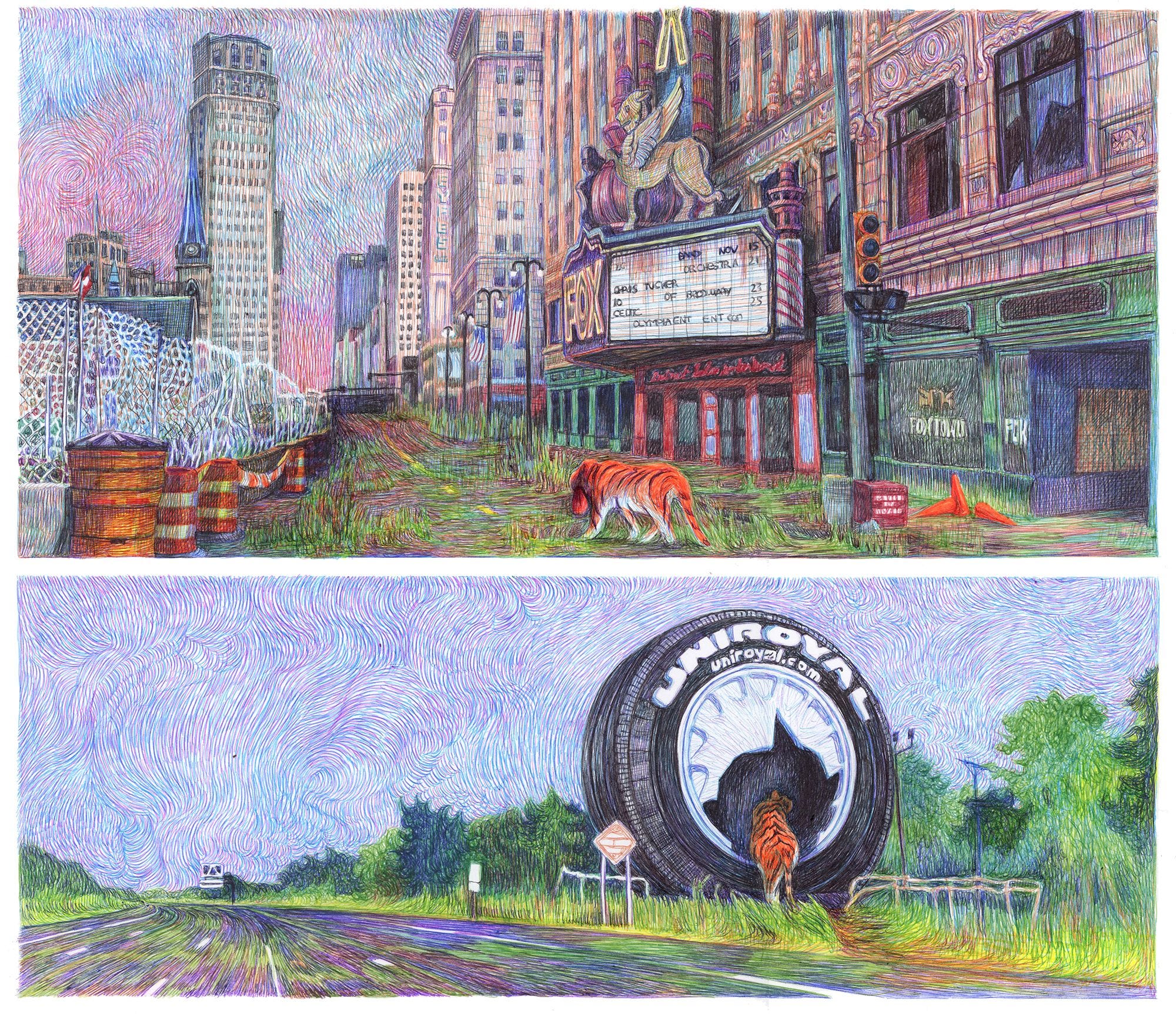 Il me rappelle aussi les thèmes sur lesquels je travaille actuellement sur mon prochain roman graphique, une Amérique déclinante, après la crise de l’industrie économique à Détroit de 2008.